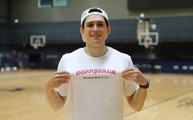 Andre Gustavson on 26-vuotias koripalloilija ja Ensiapujoukkueen pelaajakeulakuva. Andre lähti mukaan pelaajakeulakuvaksi hyvän asian takia ja hän allekirjoittaa ensiapukoulutuksen perusajatuksen: harjoittelemalla ja varautumalla pystyy toimimaan paremmin.